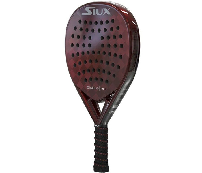 La nueva Siux Diablo Pro 4 es una pala de pádel profesional pensada para jugadores exigentes que necesitan una herramienta versátil, capaz de adaptarse a todas las fases del juego con alto rendimiento. Por ello, es la pala elegida por Tino Libaak, jugador profesional de pádel, para sus partidos de 2025. Su forma híbrida y balance medio ofrecen una perfecta combinación entre control y potencia, ideal para dominar tanto desde el fondo como en la red.