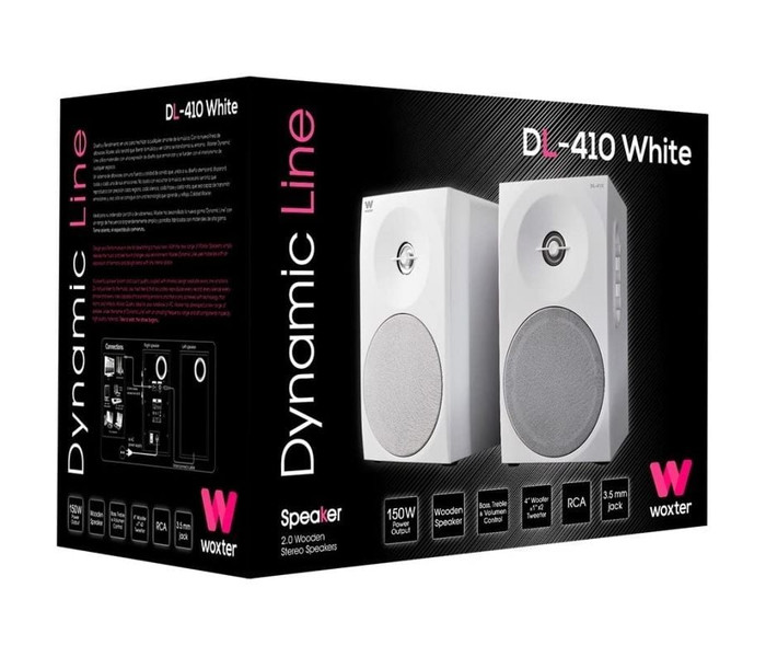 Woxter Dynamic Line DL-410 es un compacto sistema de altavoces estéreo que ofrece una fantástica calidad de sonido para tus dispositivos multimedia, como televisores, reproductores MP3/MP4, tablets y equipos de sobremesa. Este sistema de altavoces dispone de controles de volumen, bajos y agudos en su panel lateral y cuenta con conexión estándar de 3.5 mm para garantizar su compatibilidad con la mayoría de los dispositivos multimedia digitales.