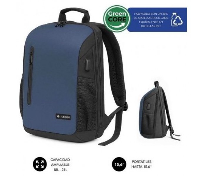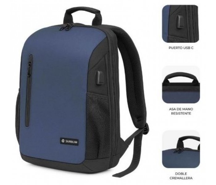 Marca iggual Modelo IGG318539 Características - Compartimento central para portátil y tablet - Admite portátil de hasta 15,6" - Compartimento frontal de gran capacidad - Puertos USB + micro laterales con tapa - 4 bolsillos exteriores (2 frontales + 2 laterales) - Re..