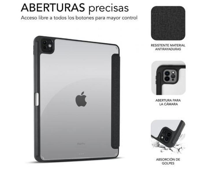 Protege tu valioso iPad Pro 13? M4 de 7a Generación con total confianza gracias a esta exclusiva funda que garantiza una protección completa en todo momento. Su diseño moderno y elegante en formato Full SmartCover hará que tu dispositivo luzca sofisticado y atractivo.La carcasa posterior de la funda está fabricada con material termoplástico de alta calidad, con una parte central transparente que te permite admirar la belleza original de tu dispositivo, al mismo tiempo que brinda una protección especial contra posibles daños.Además, los bordes de la funda están reforzados, asegurando una protección adicional contra caídas accidentales.La instalación de esta funda es rápida y sencilla, gracias a su práctico clip que permite un ajuste perfecto en tu iPad Pro. Una vez colocada, tendrás acceso a todas las funciones de tu Tablet sin tener que removerla, ya que los botones y puertos son fácilmente accesibles.Disfruta de una experiencia visual y de escritura cómoda gracias a los diferentes ángulos de visión que ofrece esta funda. Podrás ajustar el ángulo según tus necesidades, ya sea para ver videos o para escribir con comodidad.La funda también cuenta con una apertura precisa para la cámara, lo que te permite capturar fotos y videos sin obstáculos ni distorsiones. No tendrás que preocuparte por la calidad de tus tomas, ya que la funda garantiza un acceso óptimo a la cámara.Esta funda de una sola pieza se ajusta perfectamente a tu nuevo iPad Pro 13" como si fuera un guante, brindando una protección integral. Además, su cierre magnético de precisión asegura un transporte seguro dondequiera que vayas, sin riesgo de que la funda se abra accidentalmente.