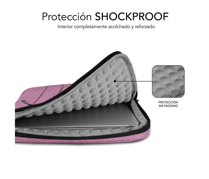 La tecnología Air Padding de SUBBLIM proporciona una protección excepcional al crear una capa de burbujas acolchadas que absorben impactos y protegen tu dispositivo de forma efectiva cubriendo incluso los bordes, los extremos y los laterales de tu ordenador.Múltiples Bolsillos