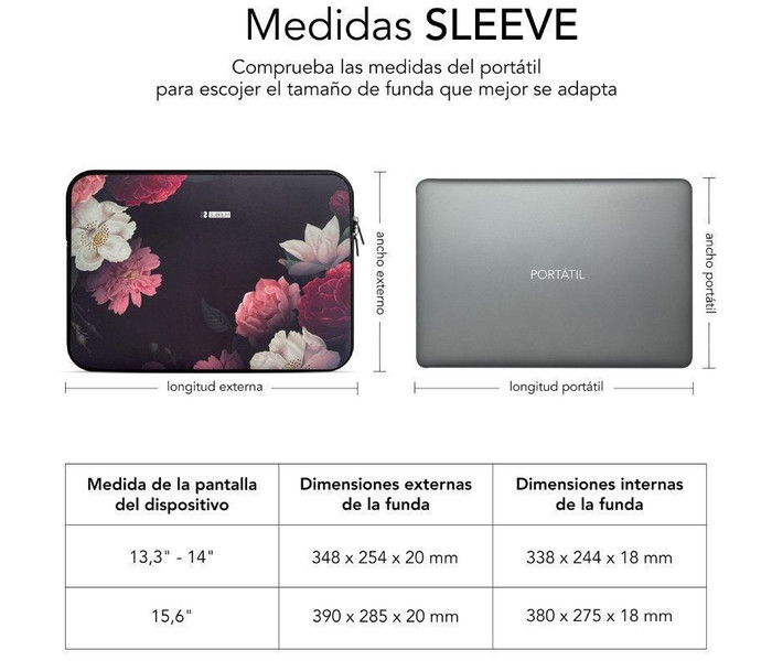 SUBBLIM Funda Ordenador Neopreno Trendy Sleeve Neo Flowers 13,3-14"