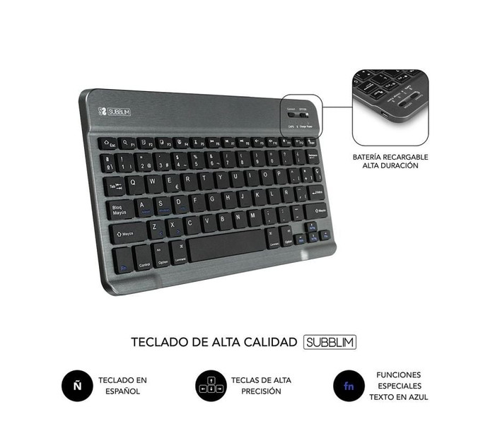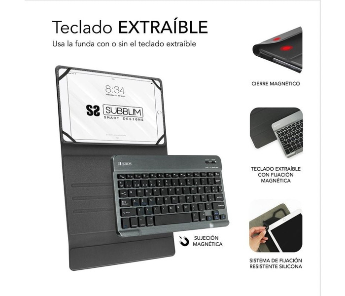 - Teclado Bluetooth extraíble con funda para Tablet de hasta 10,1"