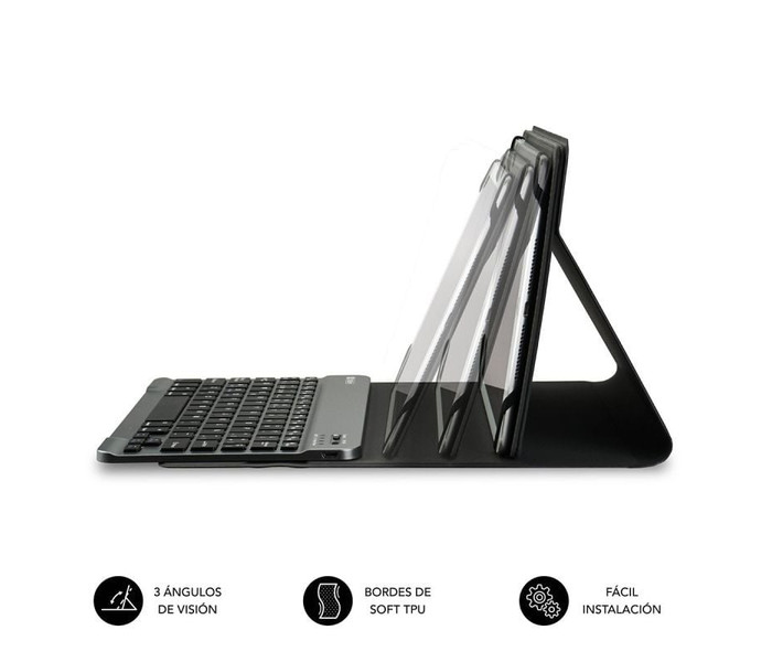 Funda con Teclado Subblim Keytab Pro USB para Tablets de 10.1"-11"/ Negra Teclado integrado con funda para Tablet de hasta 10,1" Compatible con dispositivos Android 4.0 o posterior Conector Micro USB con Adaptador Type C Incluido Resistente material exterior con acabado en símil Fibra d..
