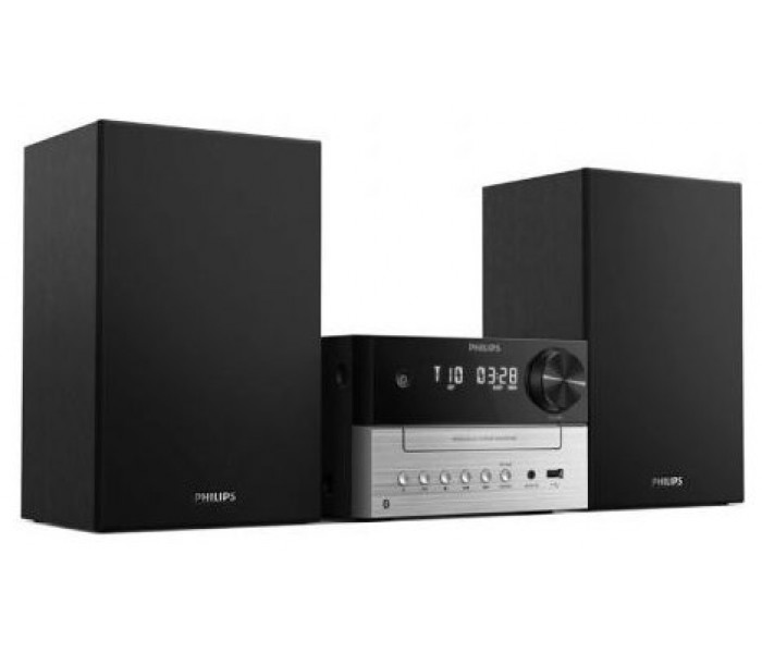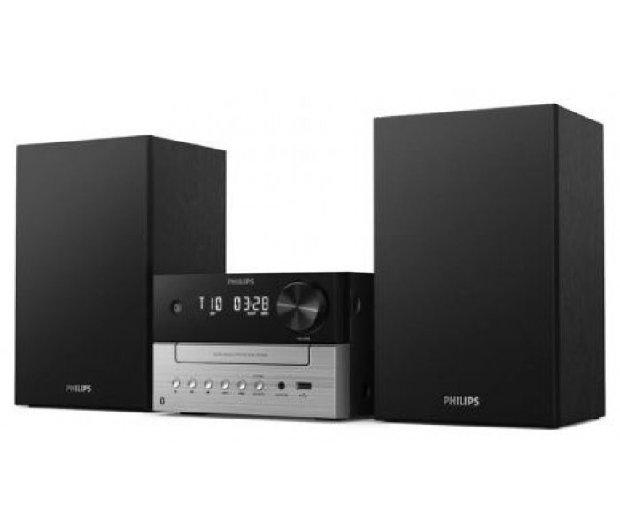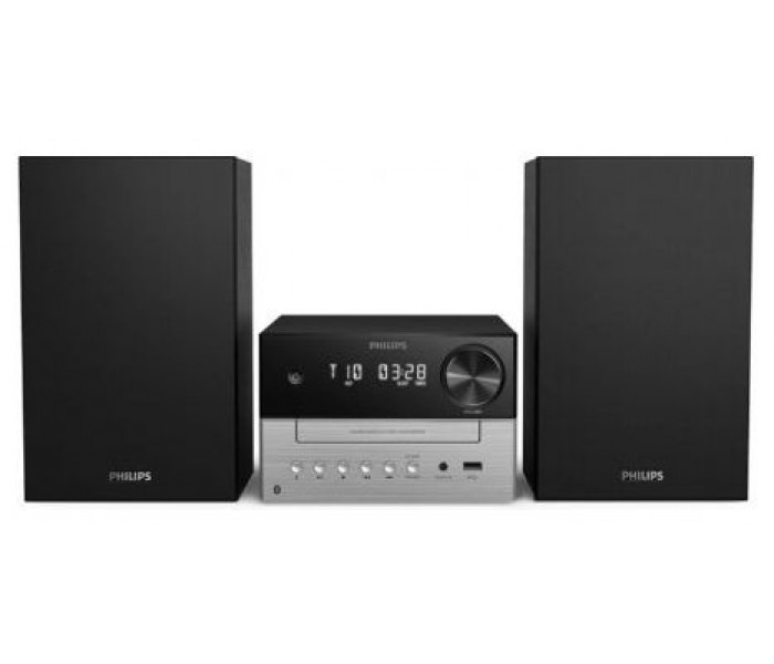 Con su unidad central y las carcasas de los altavoces en dos tonos sutiles, esta atractiva microcadena recuerda el diseño de los componentes Hi-Fi independientes clásicos. El diseño compacto facilita la colocación del sistema en casa, y cuenta con botones en la parte frontal de la unidad para la reproducción y la selección de la fuente.