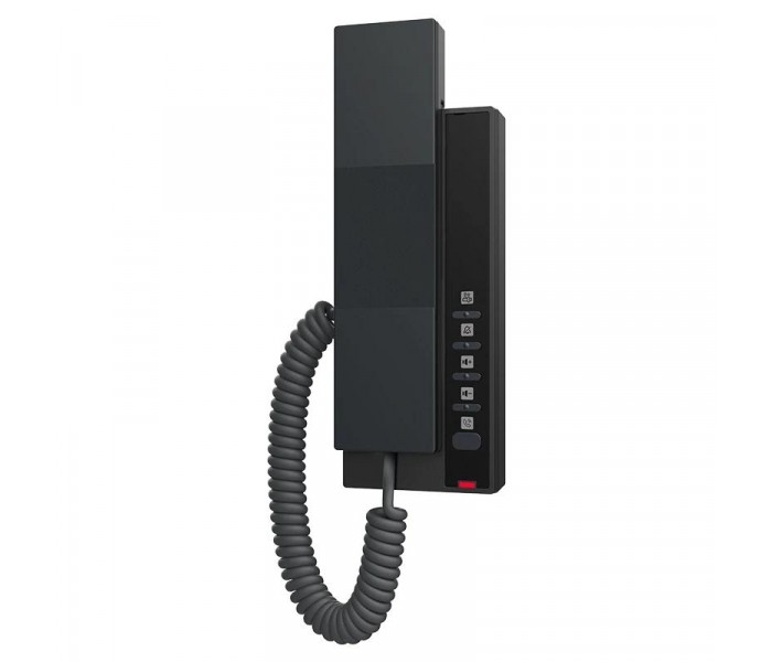 | Características | - Teclas programables: 2 soft keys para linea de servicio - Frontal personalizado - Conectividad inalambrica: WiFi 2,4 GHz y 5 GHz (WiFi 6) - Auricular magnetico - Audio: codecs G.722 y Opus - Red: Ethernet 10/100 Mbps - Alimentacion: DC - Instalacion: montaje en pared |