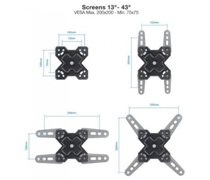 SOPORTE PARED EQUIP 650402 - PARA PANTALLAS 23/42" (58.4/106CM) - VESA 75X75 / 100X100 / 200X100 / 200X200 - INCL -7.5/7.5º - GIRO -25/25ºSOPORTE PARED EQUIP 650402 - PARA PANTALLAS 23/42" (58.4/106CM) - VESA 75X75 / 100X100 / 200X100 / 200X200 - INCL -7.5/7.5º - GIRO -25/25ºEspecificaciones técnica..