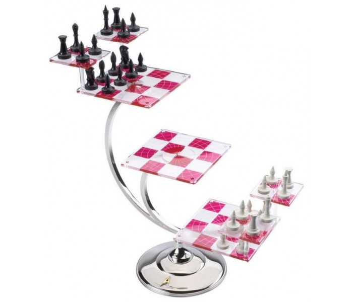 de 1960. con una altura de 335 mm y un ancho de 160 mm con 32 piezas. el área de juego se distribuye en siete tableros acrílicos interconectados - montados sobre una base de aleación de zinc