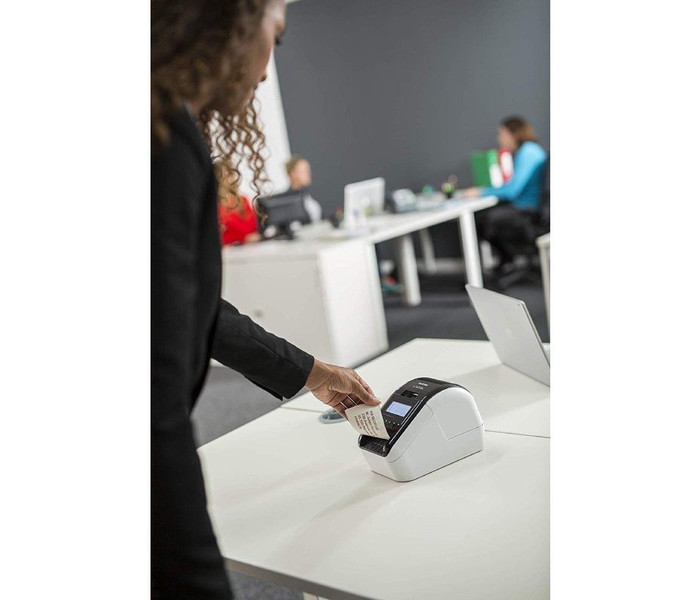 Impresora de etiquetas profesional ideal para la oficina con conexión de red cableada, WiFi, Bluetooth MFi y pantalla LCDImprime desde dispositivos móviles a través de conexiones sin cables, WiFi y Bluetooth MFi.