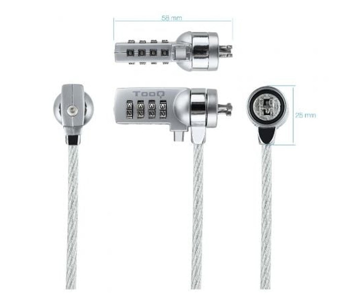 Cable de Seguridad para Portátiles TooQ TQCLKC0015-G/ 1.5m¡Personaliza tu código de seguridad y mantén a salvo tus equipos de cualquier robo! Compatible con dispositivos que tengan un puerto Kensington.. . Especificaciones. . Universal y fácil de usar. Cable de acero de 1.5 metros y 5.0 mm de diámet..