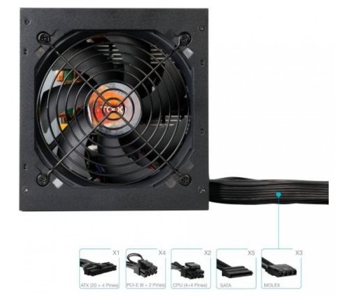 - Conectores: 1 conector ATX (24 pines) - longitud exterior 550 mm, 2 conector CPU (P8 4+4 pines) - longitud exterior 600 mm, 4 conector PCI-E (P8 6+2 pines) - longitud exterior 550+150 mm, 5 conectores SATA y 3 MOLEX - longitud exterior 550+150+150+150 mm