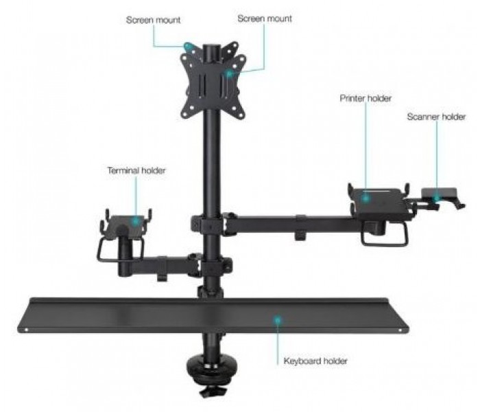 Soporte de Mesa para TPV/Impresora/Dos Pantallas de 17”-32”/Terminal/Lector/Teclado