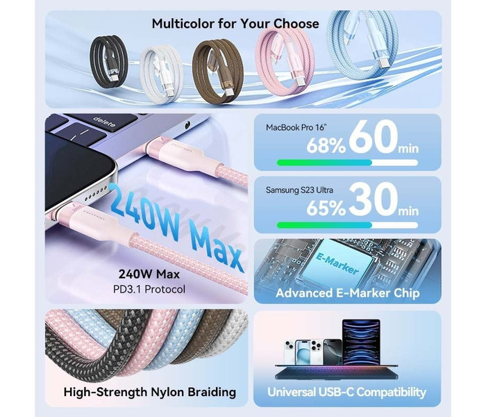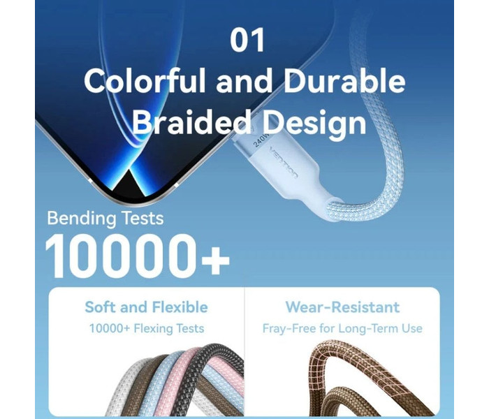 Vention Cable USB-C 5A 240W Carga rapida 1m TRISF Alu Azul