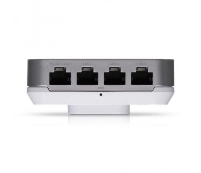 | Características | - Dimensiones: 139,7 x 86,7 x 25,75 mm (5,5 x 3,41 x 1,01 ") - Peso: 210 g (7,41 oz) - Interfaz de red: (5) puertos Ethernet 10/100/1000 - Botones: Reset - Método de energía: 802.3af PoE 802.3at PoE + - Rango de voltaje admitido: 44 a 57 VCC - Fuente de alimentación: UniFi Switch (PoE) - Salida PoE: Passthrough de 48V (Pines +1, 2; -3, 6) - Ahorro de energía: compatible - Beamforming: compatible - Consumo máximo de energía: 11 W - con PoE Passthrough: 23W Requiere conmutador 802.3at PoE + - Poder TX: 2,4 GHz: 23 dBm 5 GHz: 26 dBm - Antenas: Doble banda: (2) antenas de doble banda de polaridad única y puerto único, 2,4 GHz: 1,8 dBi cada una, 5 GHz: 3,4 dBi cada una Banda única: (2) antenas de un solo puerto, polaridad dual, banda única, 5 GHz: 6 dBi cada una - Estándares de Wi-Fi: 802.11 a / b / g / n / ac / ac-wave2 - Seguridad inalámbrica: WEP, WPA-PSK, WPA-Enterprise (WPA / WPA2, TKIP / AES) 802.11w / PMF - BSSID: hasta 8 por radio - Montaje: Caja de pared eléctrica de 1 unidad (no incluida) - Temperatura de funcionamiento: -10 a 60 ° C (14 a 140 ° F) - Humedad de funcionamiento: 5 a 95% sin condensación - Certificaciones: CE, FCC, IC Gestión de tráfico avanzada - VLAN: 802.1Q - QoS avanzada: limitación de la tasa por usuario - Aislamiento de tráfico de invitados: compatible - WMM: voz, video, mejor esfuerzo y fondo - Clientes concurrentes: 200+ Tasas de datos admitidas (Mbps) - Estándar: Tasas de datos 802.11a: 6, 9, 12, 18, 24, 36, 48, 54 Mbps 802.11n: 6,5 Mbps a 300 Mbps (MCS0 - MCS15, HT 20/40) 802.11ac: 6.5 Mbps a 1.7 Gbps (MCS0 - MCS9 NSS1 / 2/3/4, VHT 20/40/80) 802.11b: 1, 2, 5,5, 11 Mbps 802.11g: 6, 9, 12, 18, 24, 36, 48, 54 Mbps |
