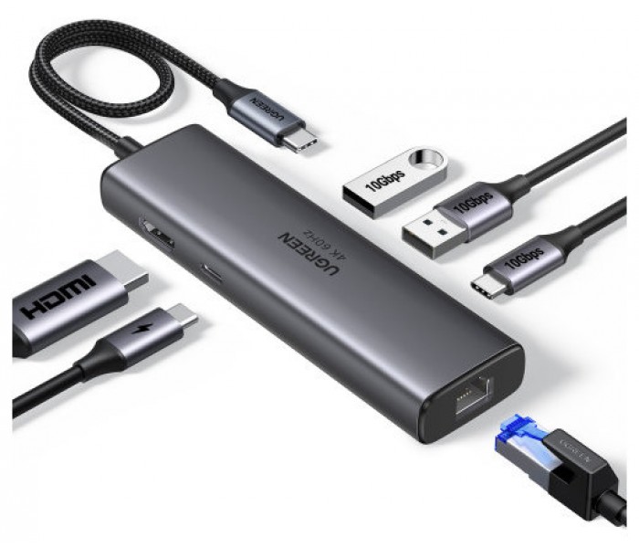[Conectividade 6 em 1] O Revodok hub USB C inspira mais potencial da porta USB-C do seu portátil com 1 porta HDMI 4K@60Hz, 1 porta Gigabit Ethernet, 1 porta de carregamento PD de 100W, 1 porta USB-C de 10 Gbps, 2 portas USB-A 10 Gbps. O USB-C Hub é perfeito para as suas necessidades de conectividade de ecrã externa, redes com fio e transferência de dados.