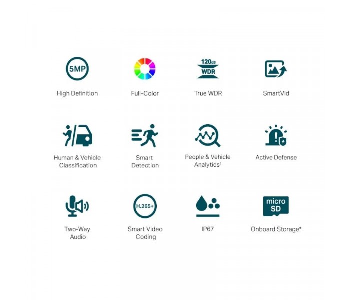 Características | Red - Protocolo: TCP/IP, UDP, ICMP, HTTP, HTTPS, DHCP, DNS, RTSP, NTP, UPnP UDP, SSL/TLS - ONVIF - API: Open Network Video Interface (Profile S) - Vista en vivo simultánea 3 transmisiones principales y 3 subtransmisiones - Client: VIGI App, VIGI Security Manager, Web UI, VIGI VMS - Navegador web: Google Chrome® 57 and above Firefox® 52 and above Safari® 11 and above Microsoft® Edge 91 and above - Nube - Seguridad: Protección con contraseña, cifrado HTTPS, filtro de dirección IP, autenticación implícita Alarma y Gestión de Eventos - Evento inteligente Clasificación de personas y vehículos Detección de intrusiones Detección de cruce de líneas Región que ingresa a la detección Detección de salida de región Detección de objetos abandonados Detección de eliminación de objetos Detección de merodeo Marco inteligente Detección de personas Detección de vehículos - Evento Básico Detección de movimiento Detección de manipulación de vídeo Excepción (inicio de sesión ilegal) Detección de cambio de escena - Enlace de alarma Grabación de vídeo en tarjeta de memoria Envío de mensajes Advertencia audible Luz blanca intermitente - Notificación de salida: Mensaje push Alimentación - Fuente de alimentación 12V DC ± 5%, Max. 9.7 W, 5.5 mm Coaxial Power Plug PoE: 802.3af/at, class 0, Max. 10.7 W Dimensiones y peso - 74 × 184 × 74 mm - 0.525 Kg Contiene - Cámara de red VIGI - Guía de inicio rápido - Accesorios para cables impermeables - Accesorios de montaje |