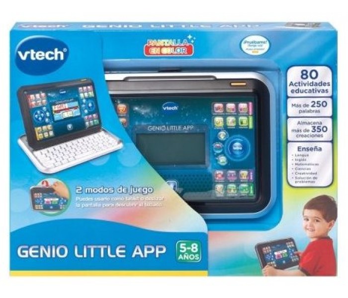Genio Little App de VTech combina la pantalla en color con la función deslizable, para jugar con él como tablet o como portátil. Contiene 80 actividades clasificadas en 27 aplicaciones que cubren muchas materias. Además, ¡almacena hasta 350 creaciones!