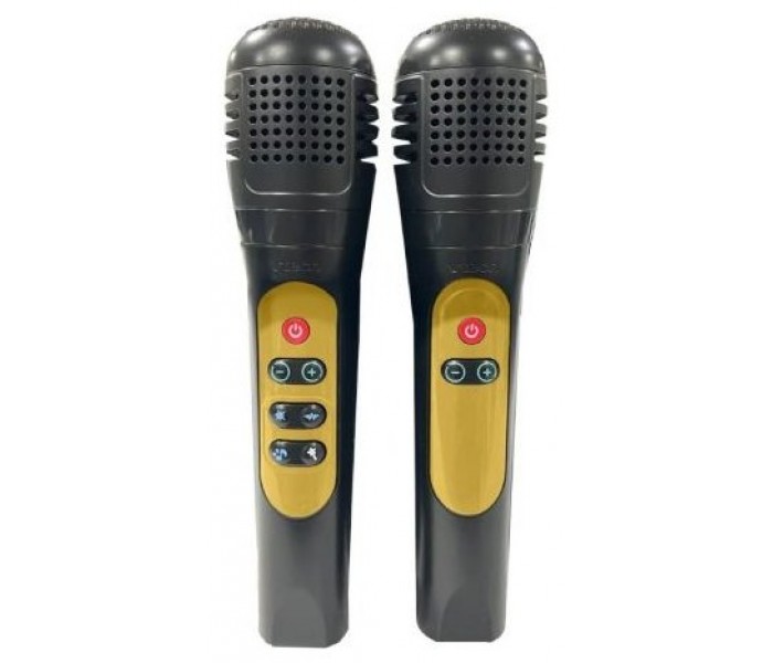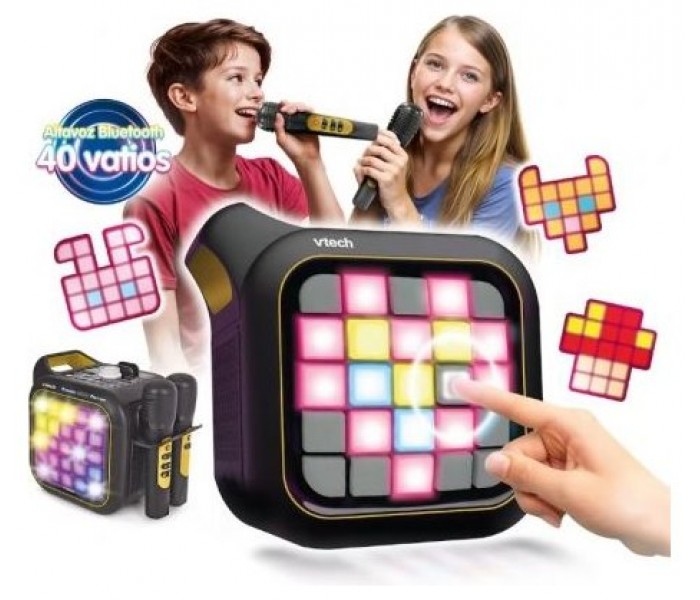 - Dos micrófonos para cantar a dúo, con 4 botones con efecto vibrato, efecto que simula coros y efectos para modificar la voz.