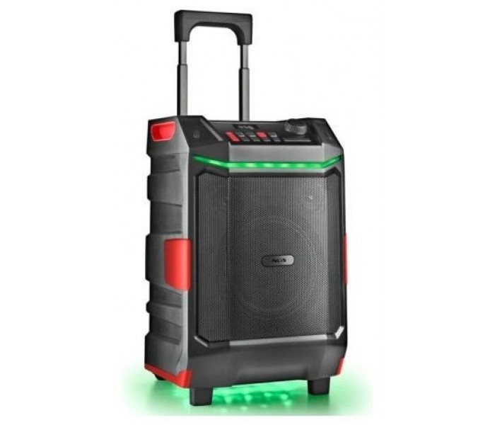 - Tamaño compacto y portátil (incluye ruedas y trolley), proporciona sonido de alta calidad gracias a su gran potencia de salida, 50W RMS.
