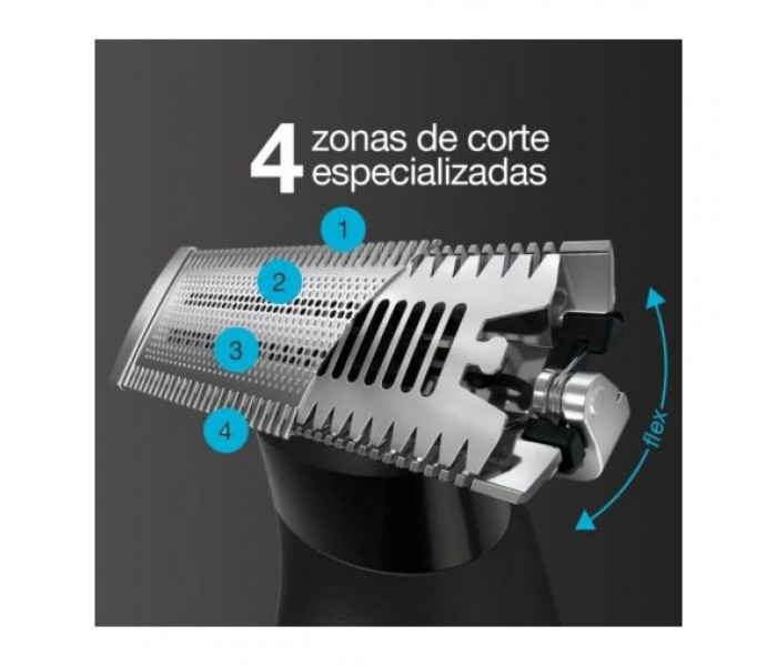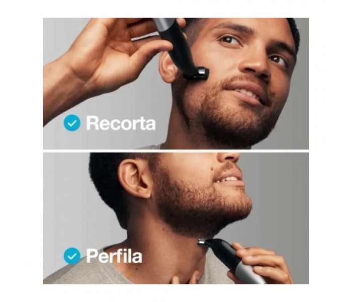- Afeita, recorta y perfila con una sola herramienta: afeitadora eléctrica y recortadora de barba todo en uno para hombre. Afeitado fácil, rápido y agradable en cada pasada, incluso en las zonas complicadas. Para la cara (peines de 1, 2, 3, 5 mm) y para el cuerpo (peine de 0 mm).