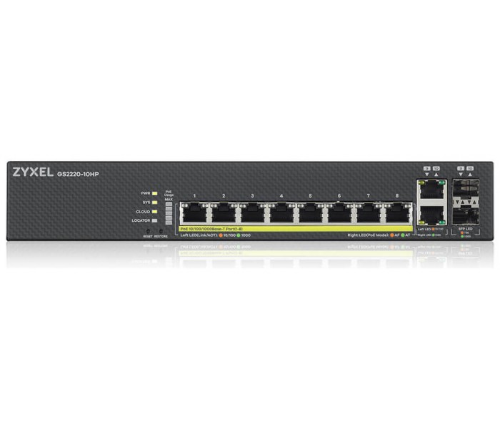 Zyxel GS2220-10HP-EU0101F switch Gestionado L2 Gigabit Ethernet (10/100/1000) EnergÃa sobre Ethernet (PoE) Negro